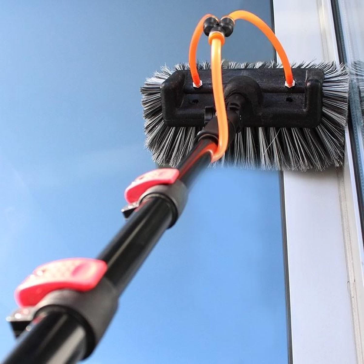 Bij deze set wordt een 5-vlakkenborstel geleverd die ideaal is voor de grondigere klusjes. Dankzij de gevlokte, hittebestendige haren is deze borstel onder meer geschikt voor zonnepanelen, ramen, boeidelen en overkappingen. De extra haren aan de zijkant van de borstel fungeren als een buffer, zodat je perfect in alle hoekjes kan poetsen zonder bv. de raamlijsten te beschadigen.