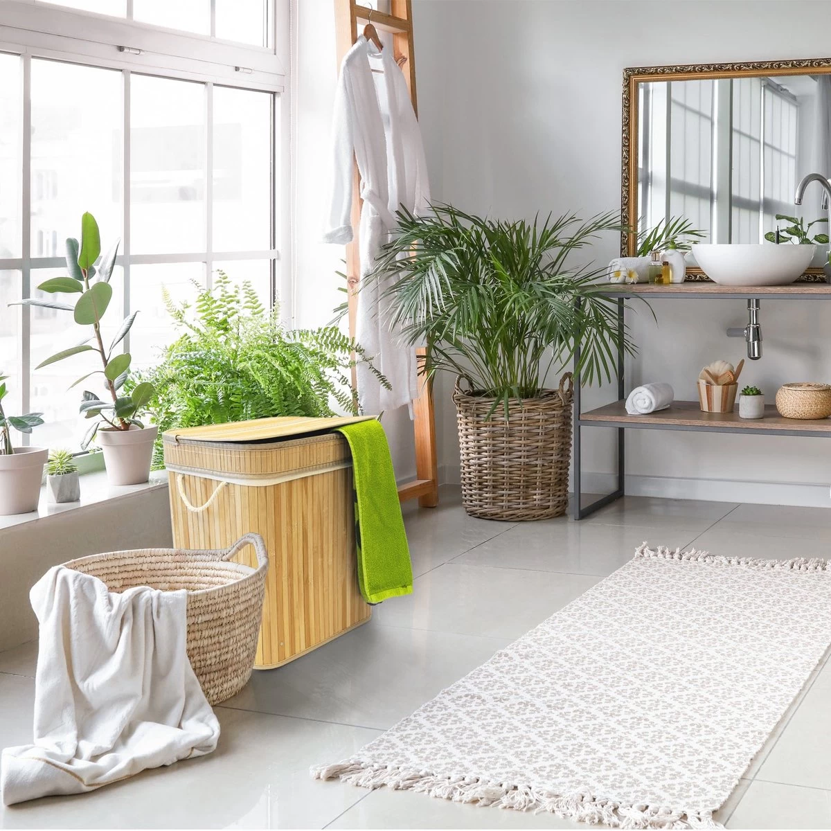 Onze bamboe wasmand is niet alleen een echte blikvanger, hij houdt ook de badkamer, slaapkamer en kinderkamer netjes. Onze manden zijn gemaakt van bamboe en passen door de natuurlijke kleur perfect in je interieur. De bamboe geeft de manden extra stabiliteit en maakt ze bijzonder veerkrachtig in het dagelijks leven. Onze manden zijn verkrijgbaar in twee vormen en zes verschillende maten.