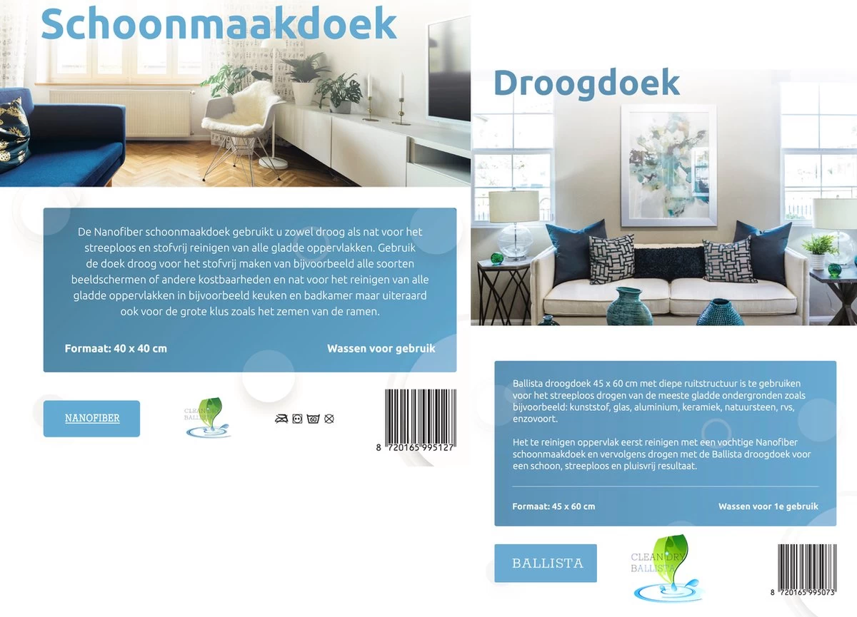 Droogdoeken set 2 droogdoeken met 2 micro/nanovezel schoonmaakdoeken.