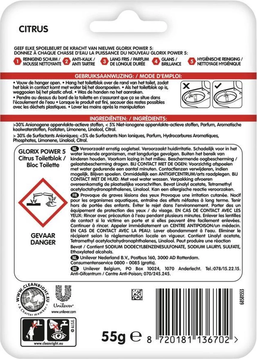 Glorix Power 5 Toiletblokken – Citroen – 9 Stuks – Voordeelverpakking