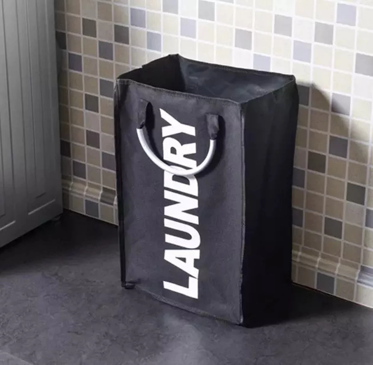 Het materiaal van de wasmand is polyester en de wasmand voelt zacht aan. De handgrepen zijn gemaakt van aluminium.