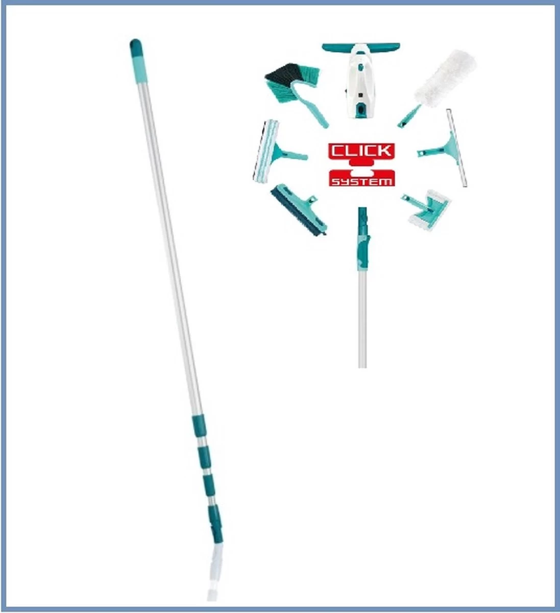 De telescoopsteel aluminium 145-400 cm van Leifheit is met zijn Clicksysteem voor verschillende reinigingsapparaten geschikt. Eenvoudig de reinigingskop verwisselen, vastklikken en klaar voor gebruik. De steel kan van 145 tot 400 cm uitgetrokken worden. Op deze manier kunnen ook muren en plafonds tot 4 meter hoogte zonder ladder gereinigd worden. Met anti-sliphandvat en ophangoog, welke 360° gedraaid kan worden. 2 jaar garantie.