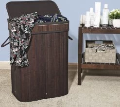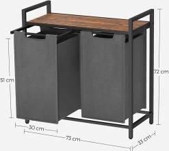 Merkloos Wasmand Met 2 Vakken, Grote Wassorteerder Met Uitschuifbare Waszakken, Bruin En Zwart
