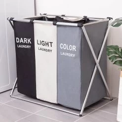 Moderne Wasmand Met 3 Vakken – Aluminium Wassorteerder – Opvouwbaar – 118L – Laundry Basket