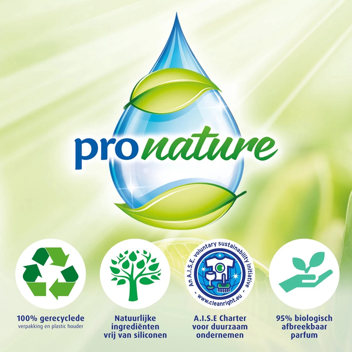 De Witte Reus Pro Nature toiletblokken bestaan uit een gerecyclede verpakking en houder. Daarnaast ondersteunt Pro Nature de Plastic Bank, een sociale onderneming die het plastic in de oceaan wil verminderen en kansen biedt aan mensen in armoede. Het karton en de houder van de toiletreiniger zijn gemaakt van 100% gerecycled plastic en karton en zijn 100% recyclebaar. Om te recyclen, scheid het karton van de plastic verpakking. Probeer naast Witte Reus Pro Nature Munt Eucalyptus, nu ook Witte Reus Pro Nature Grapefruit. De toiletblokken die zorgen voor een schoon toilet!